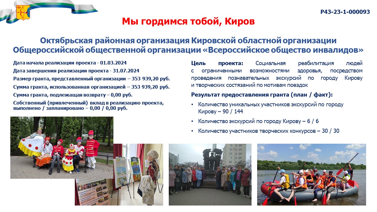 информация о выполнении календарного плана мероприятий проекта, достижении целевых показателей проекта "Мы гордимся тобой, Киров" |