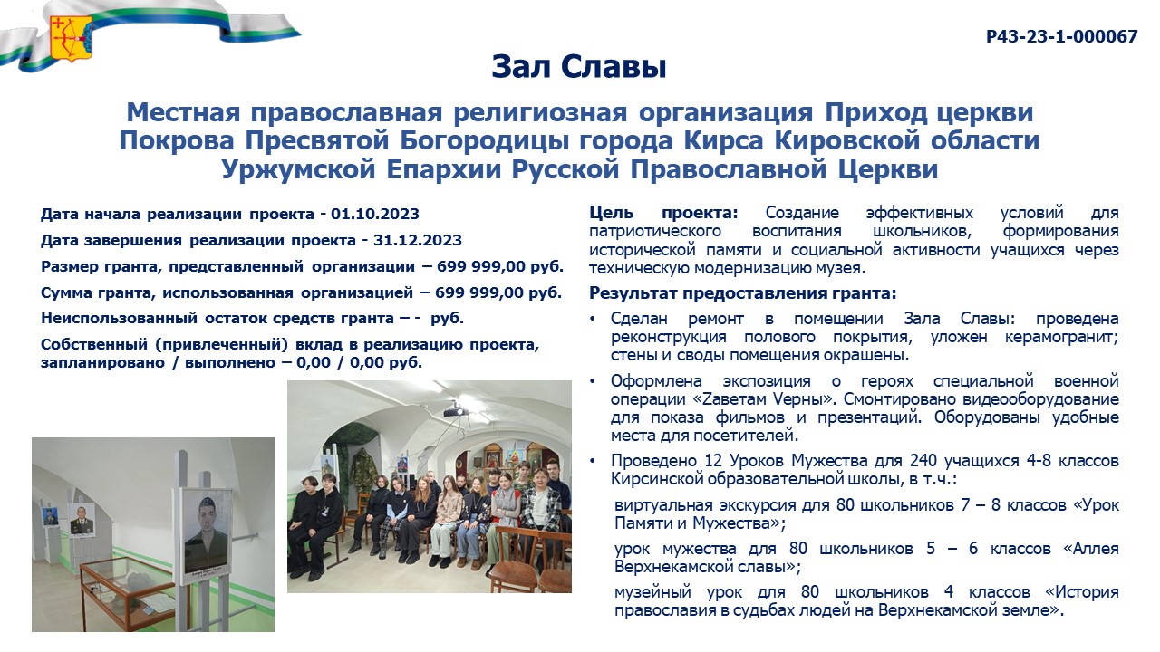 информация о выполнении календарного плана мероприятий проекта, достижении целевых показателей проекта "Исследовательский интенсив для школьников "Слободские учителя - защитники Родины" |