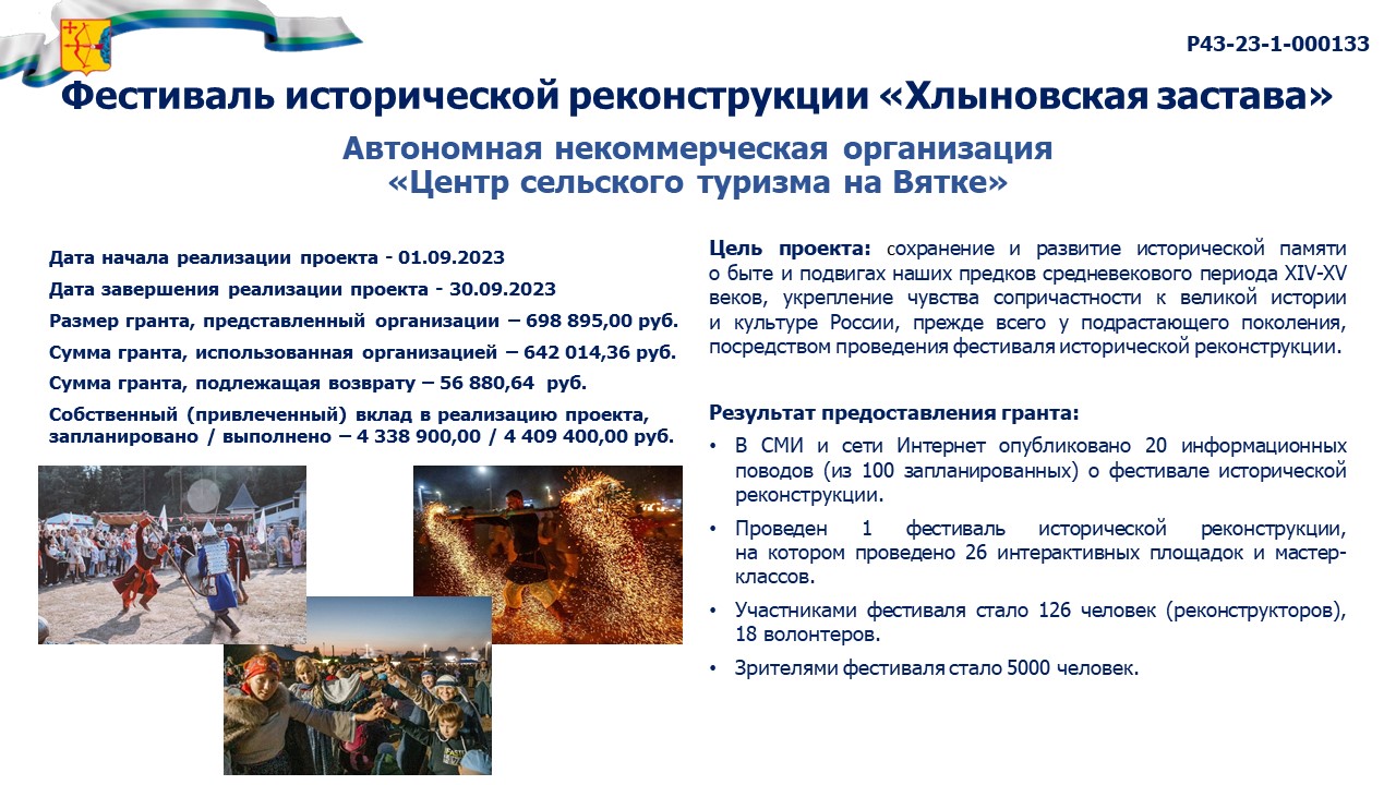 информация о выполнении календарного плана мероприятий проекта, достижении целевых показателей проекта "Фестиваль исторической реконструкции "Хлыновская застава" |