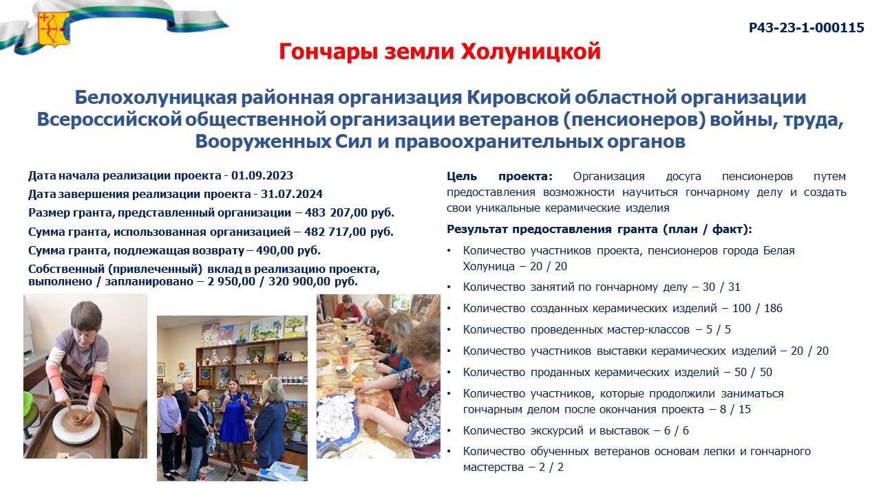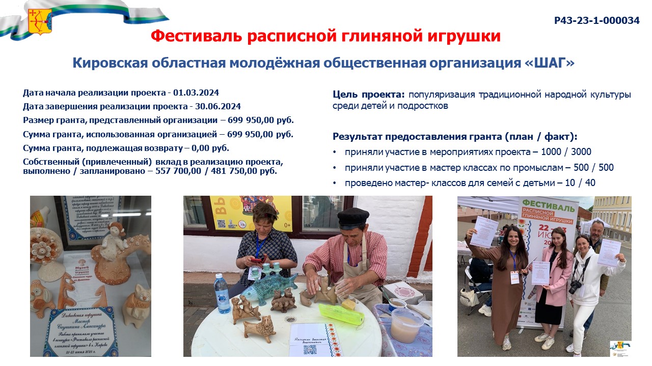 информация о выполнении календарного плана мероприятий проекта, достижении целевых показателей проекта "Гончары земли Холуницкой" |