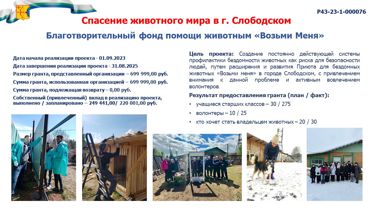 информация о выполнении календарного плана мероприятий проекта, достижении целевых показателей проекта "Спасение животного мира в г. Слободском" |