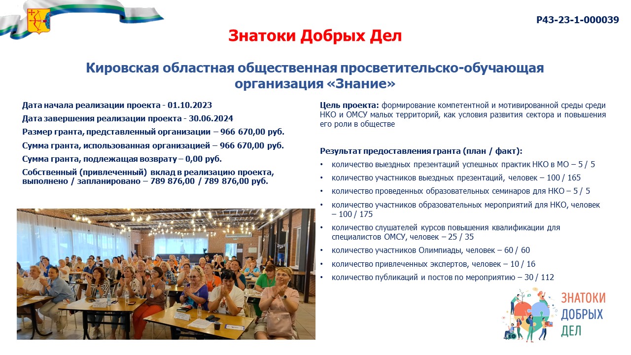 информация о выполнении календарного плана мероприятий проекта, достижении целевых показателей проекта "Знатоки Добрых Дел" |