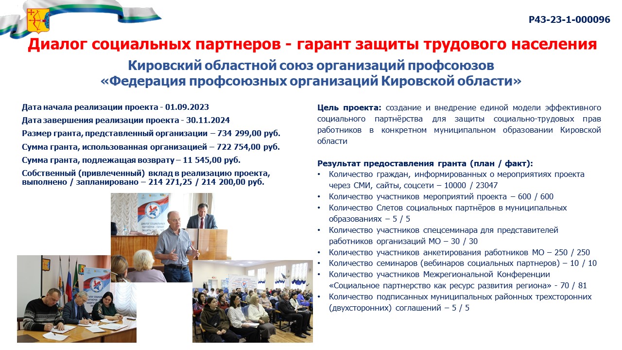 информация о выполнении календарного плана мероприятий проекта, достижении целевых показателей проекта "Диалог социальных партнеров - гарант защиты трудового населения" |
