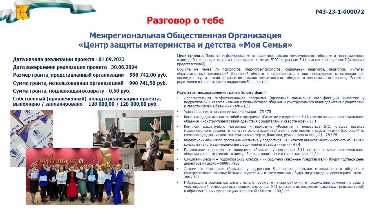 информация о выполнении календарного плана мероприятий проекта, достижении целевых показателей проекта "Разговор о тебе" |