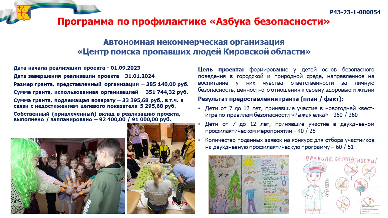 информация о выполнении календарного плана мероприятий проекта, достижении целевых показателей проекта "Программа по профилактике "Азбука безопасности" |