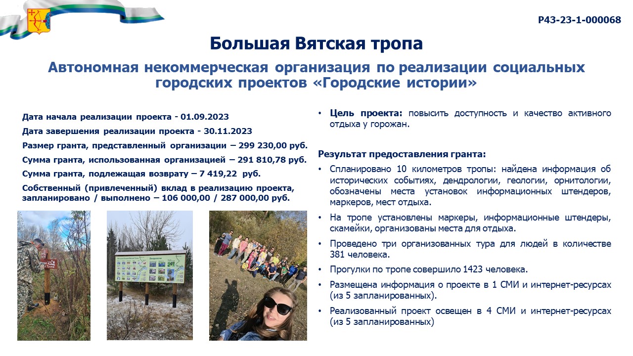 информация о выполнении календарного плана мероприятий проекта, достижении целевых показателей проекта "Большая Вятская тропа" |