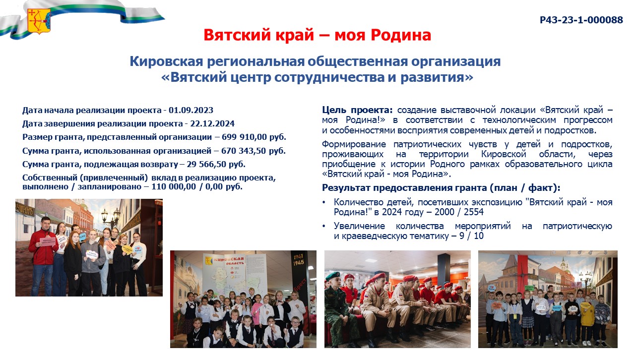 информация о выполнении календарного плана мероприятий проекта, достижении целевых показателей проекта "Вятский край - моя Родина" |