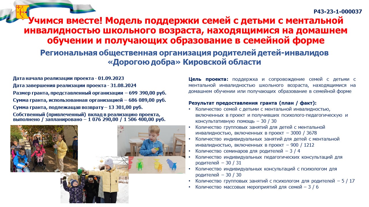 информация о выполнении календарного плана мероприятий проекта, достижении целевых показателей проекта "Учимся вместе! Модель поддержки семей с детьми с ментальной инвалидностью школьного возраста, находящимися на домашнем обучении и получающих образование в семейной форме" |