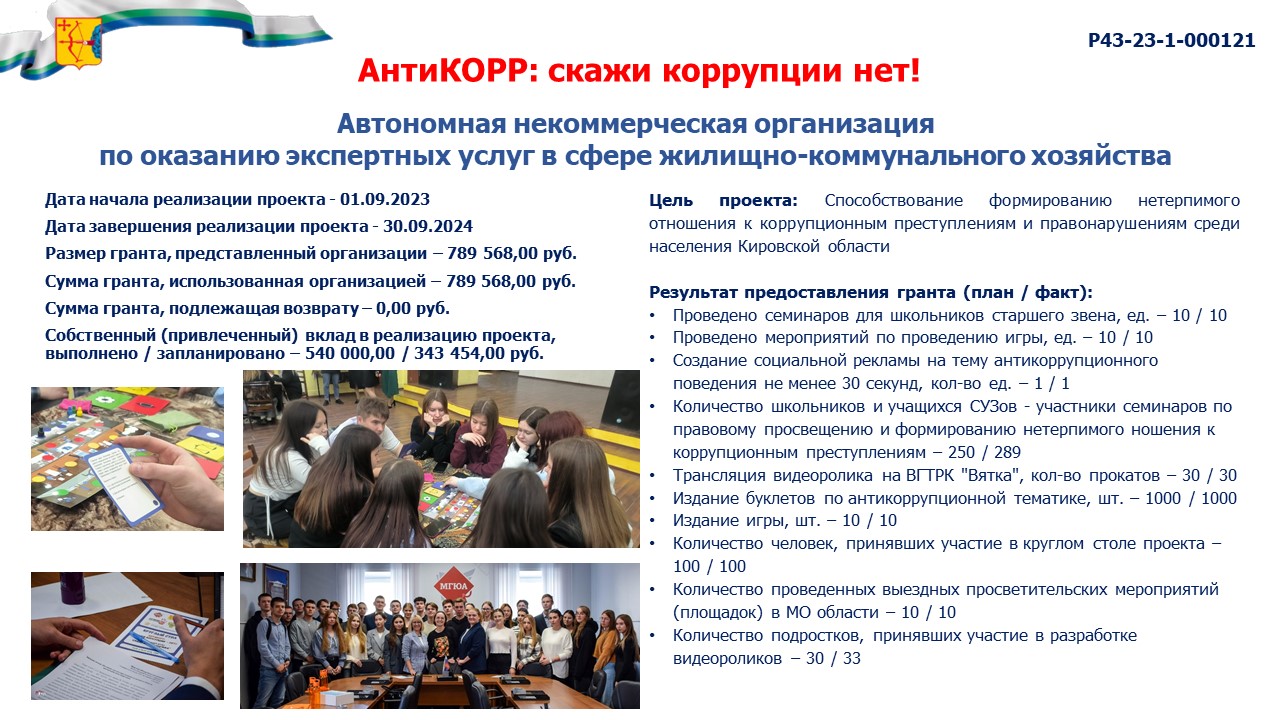 информация о выполнении календарного плана мероприятий проекта, достижении целевых показателей проекта "АнтиКОРР: скажи коррупции нет!" |