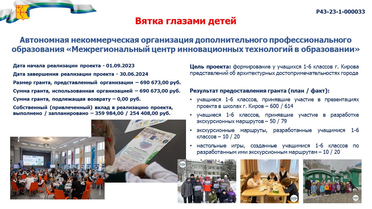 информация о выполнении календарного плана мероприятий проекта, достижении целевых показателей проекта "Вятка глазами детей" |