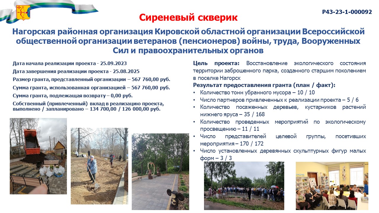 ОЦЕНКА ПРОЕКТОВ ПОБЕДИТЕЛЕЙ КОНКУРСА 2023 ГОДА, ЗАВЕРШИВШИХСЯ В 2023 ГОДУ, ПРОВЕДЕНА ВЕСНОЙ 2024 ГОДА.