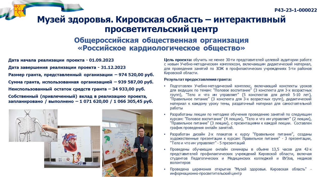 информация о выполнении календарного плана мероприятий проекта, достижении целевых показателей проекта "Музей здоровья. Кировская область - интерактивный просветительский центр" |