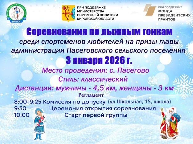 3 января 2026 года в селе Пасегово Кирово‑Чепецкого района состоится яркое спортивное событие – соревнования по лыжным гонкам среди любителей.