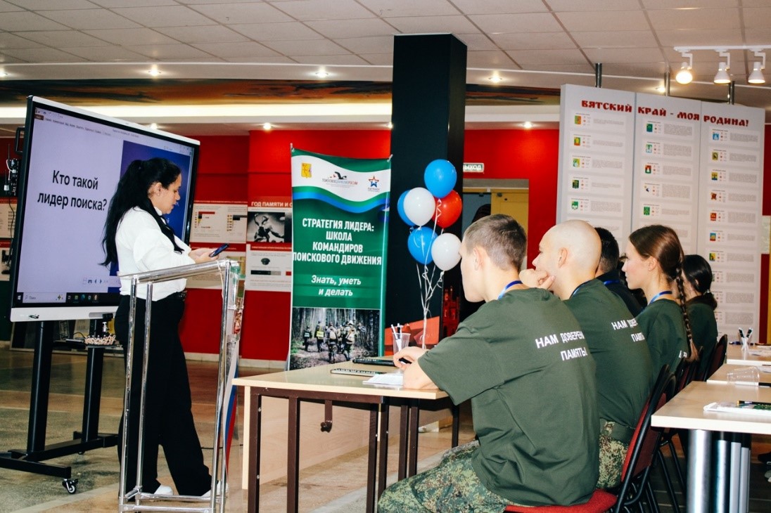 В выставочном центре системы воспитания и образования Кировской области 18 октября 2025 года прошло первое мероприятие проекта «Победная Вахта» - Школа молодого командира, которое собрало 30 самых активных членов из 25-ти поисковых отрядов Кировской области в возрасте от 16 до 18 лет.