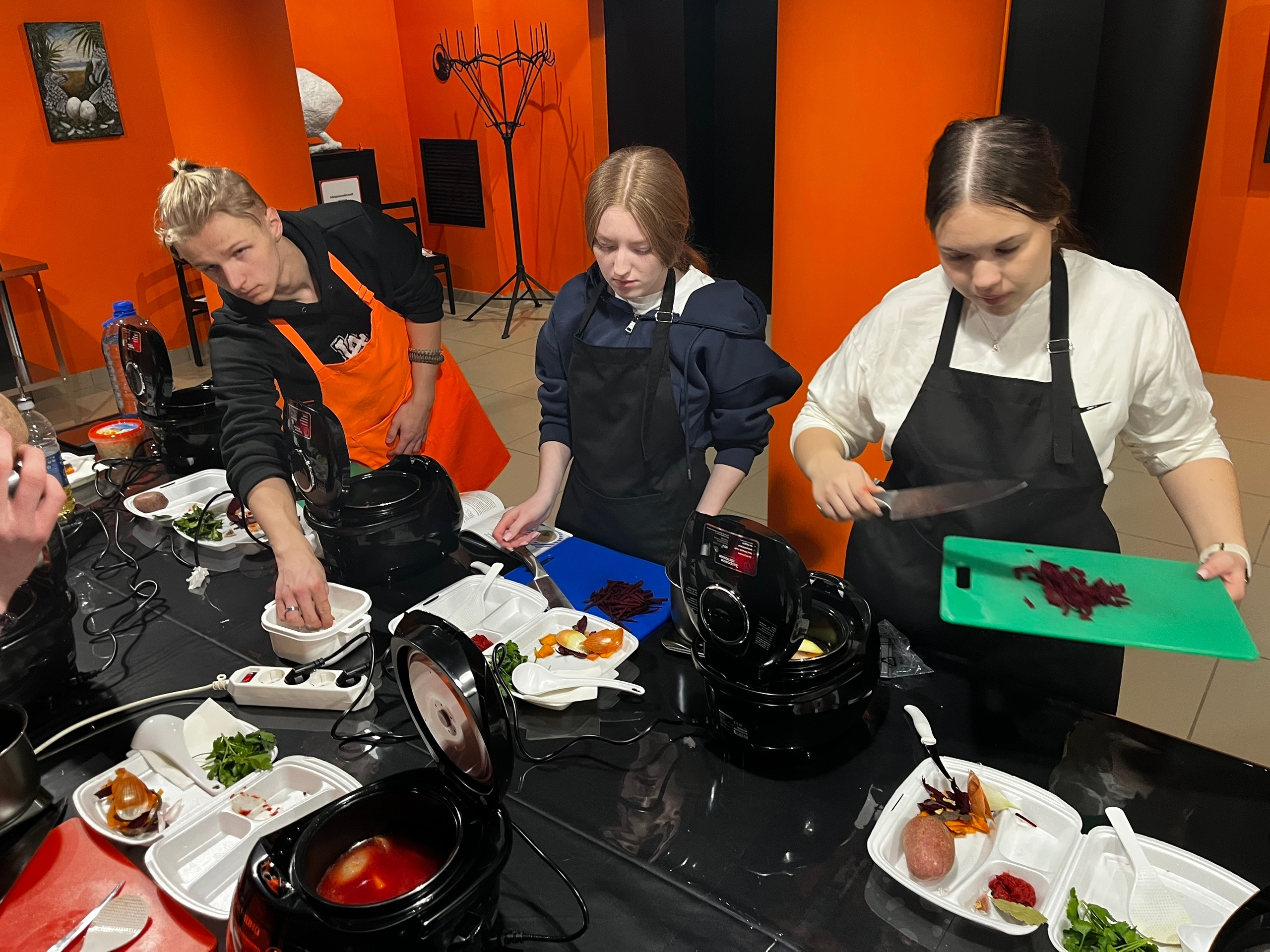 кухни. Участники проекта готовили борщ с современным уклоном — в мультиварках. В